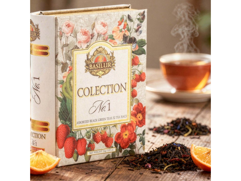 BASILUR Book Assort No. 1 je pečlivě sestavená kolekce nejoblíbenějších čajů značky BASILUR, uložená v ikonické plechové knize – designu, který se stal symbolem elegance a tradice.