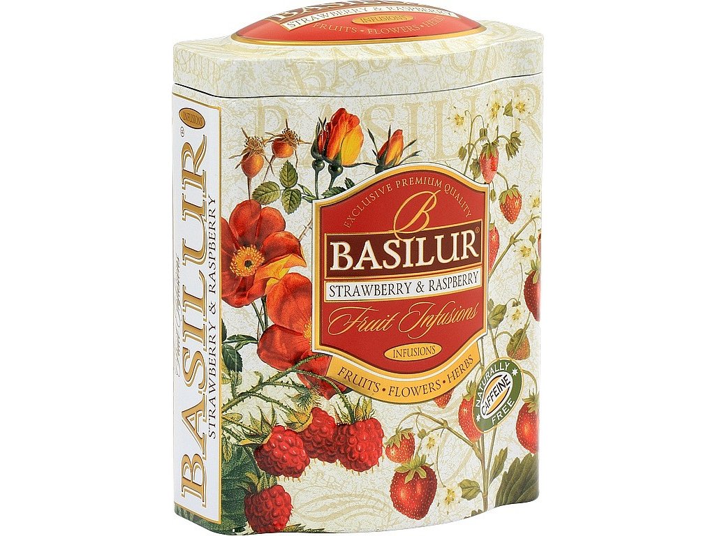 BASILUR Fruit Strawberry & Raspberry plech 100g dárkový čaj v plechové krabičce