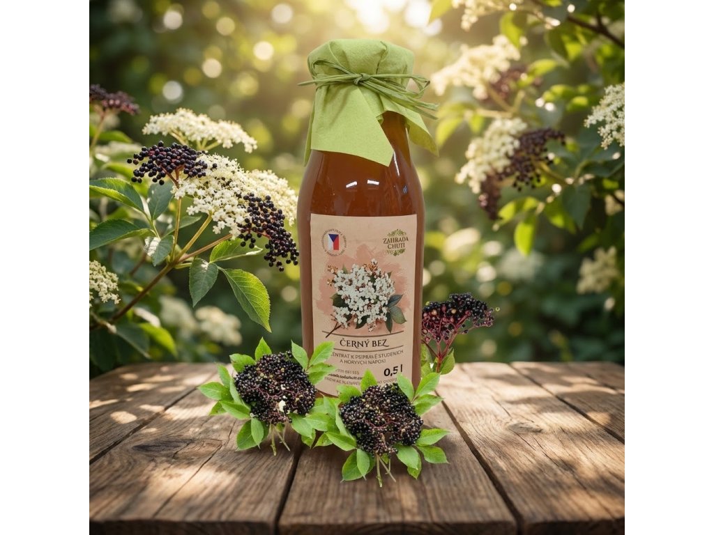 Bezový sirup je symbolem čistoty a návratu k přírodě. Každá kapka připomíná dětství, kdy jsme běhali po zahradě a pili limonádu z babiččina džbánku.