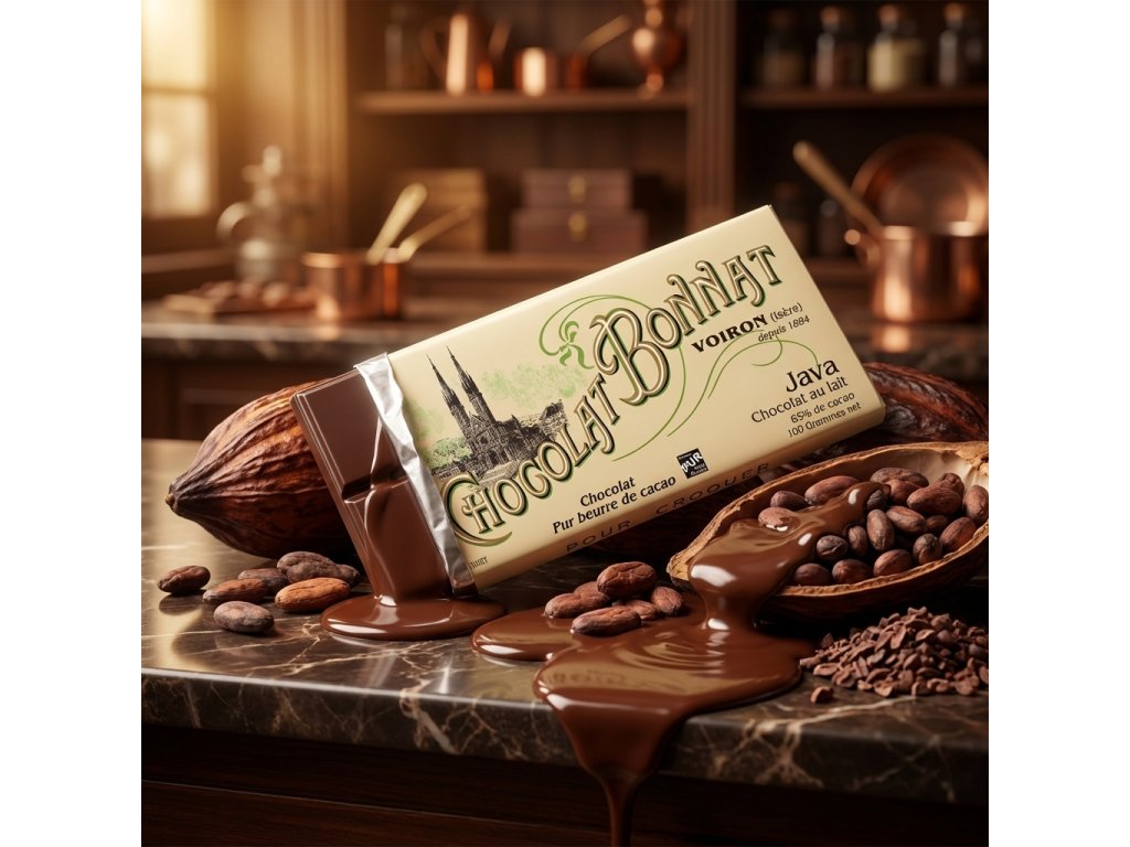 Mléčná čokoláda Bonnat Java 65 % je unikátní tabulka, která spojuje intenzitu kvalitního kakaa s jemností mléčné čokolády. Je vyrobena z kakaových bobů pěstovaných na indonéském ostrově Jáva, známém svou bohatou půdou a ideálními podmínkami pro pěstování kakaa s jedinečným aromatickým profilem.
