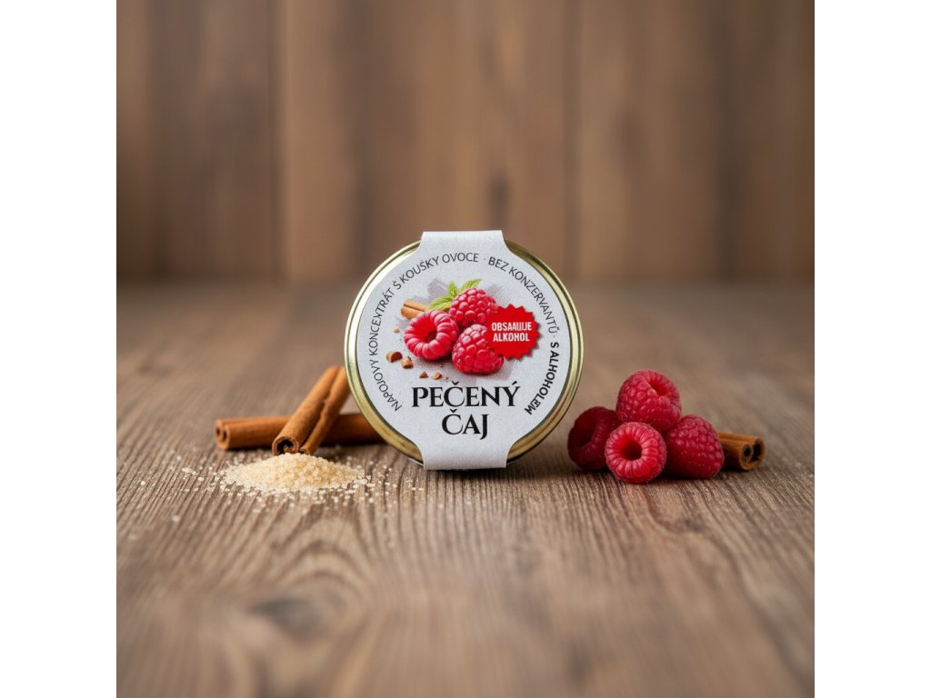 Sladká malina, kapka vodky a hřejivá atmosféra v každém doušku. Alkoholový pečený čaj pro dospělé, kteří chtějí potěšit chuťové pohárky a zahřát se zevnitř. Výborný na zimní večery i jako originální dárek.