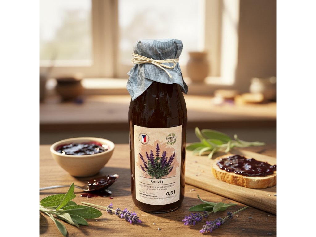Bylinný sirup s výraznou chutí šalvěje – přírodní pomocník pro nastydlí krk, klid a vnitřní sílu.