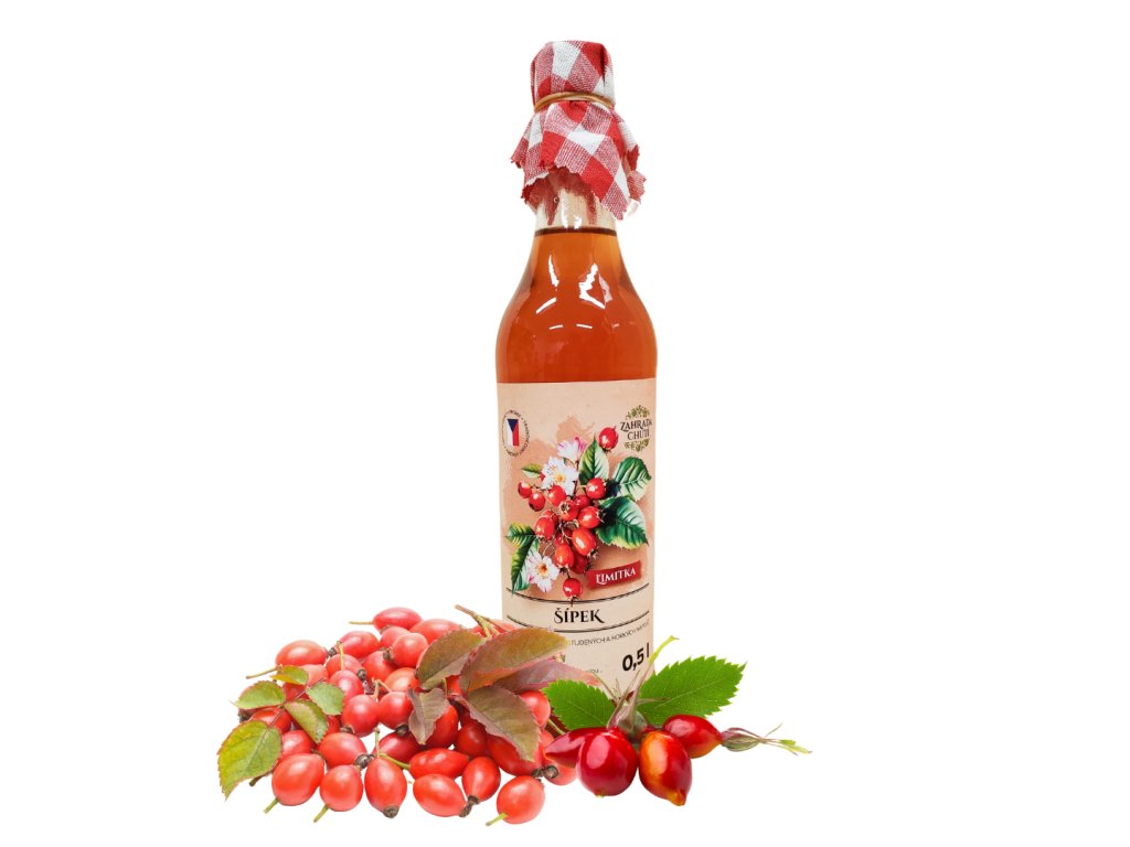 Jemně kyselkavý sirup z plodů šípku – přirozený zdroj vitamínů a chuti babího léta.