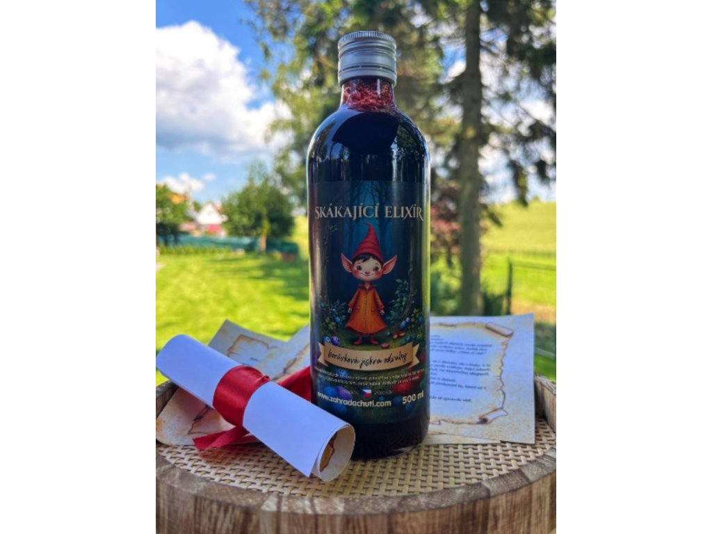 Každá kapka chutná po lesní zemi, slunci a radosti. Elixír je ručně vyráběn z pravých borůvek bez umělých přísad – čistá příroda, smích a modré kouzlo v lahvi.