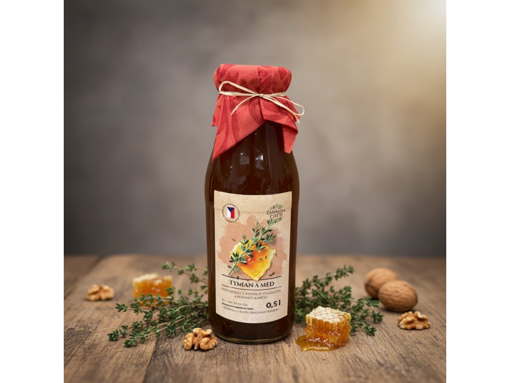 Každá kapka má v sobě teplo slunce, vůni louky a dotek péče. Sirup je ideální pro chladné dny, při kašli i jako prevence. Ručně vyráběný, bez umělých přísad – jen tymián, med, cukr a trpělivost.